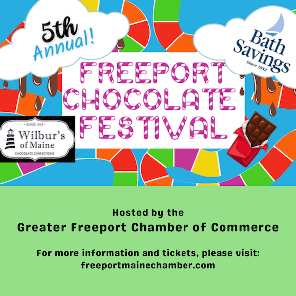 Please purchase a ticket for 5th annual Freeport Chocolate Festival to join Wilbur’s of Maine and 11 other chocolatiers for a day of chocolate in Freeport! Check-in on March 7th will be at the Freeport Chamber Office, including time slots for ticket holders to create a chocolate medallion with decadent toppings at our chocolate factory. Many downtown Freeport businesses will be hosting pop-up chocolatier shops with samples.