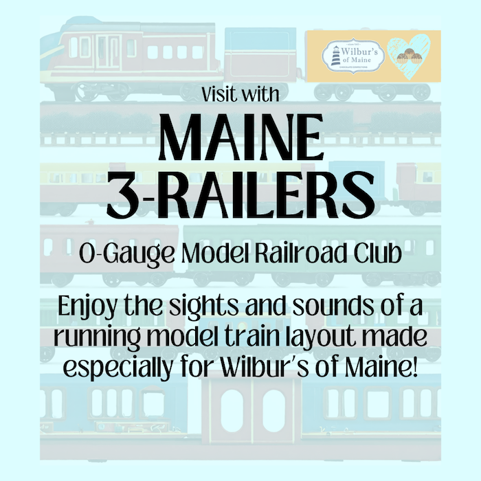 Wilbur's of Maine Factory 174 Lower Main St, Freeport, ME, United StatesThe Maine 3 Railers “O”-Gauge Model Railroad Club will be at the factory showing off a model train village that you and your children can explore! Stand and watch or take a turn at the controls, this little village is a bit of nostalgia you don’t want to miss! Free to all visitors!