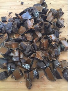 Save any salt and chocolate pieces that fall off caramels when chopping. That’s gold, baby.