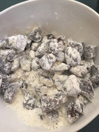 Add 1 cup of all-purpose flour and other dry ingredients to the wet mixture. Stop mixing while the mixture is still lumpy. Gently fold in sea salt caramels and flour mixture.
