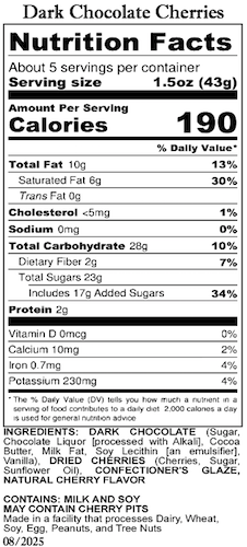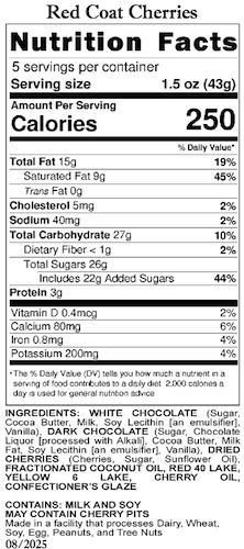 Dried cherries covered in rich chocolate. A snack-able version of that classic cherry/chocolate combination! Choose either Dark Chocolate or Red Coated (white chocolate covering dark chocolate).