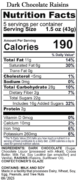 Choose raisins covered in luscious milk chocolate or all-natural dark chocolate.
