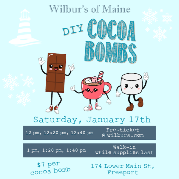 Each ticket entitles you to make your own Cocoa Bomb to take home and enjoy or give as a homemade gift! $7 per cocoa bomb. Pre-purchase tickets for time slots: 12pm, 12:20pm or 12:40pm