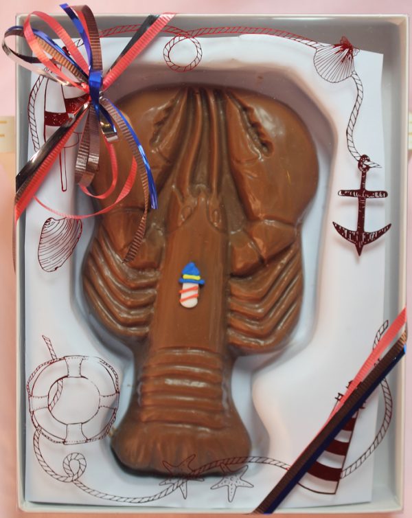 A solid milk chocolate lobster snapping it’s way into your hearts and bellies. Great way to remember times in Maine, family lobster dinners or that great time you had on the coast. Beautifully boxed.