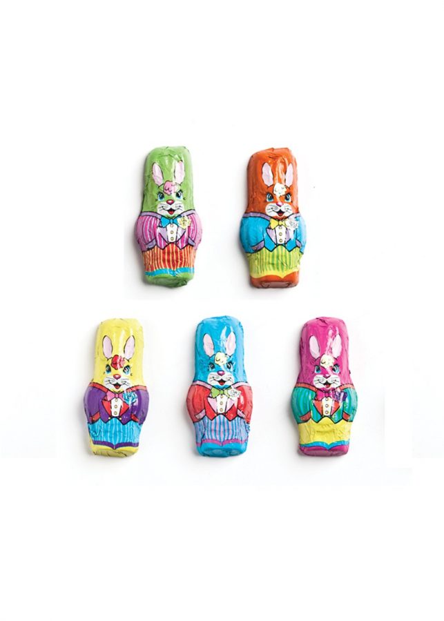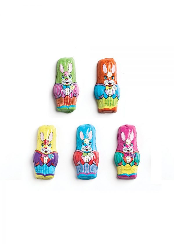 Foil wrapped standing bunnies ready to march into your Easter celebrations. Design on bunny may differ from ones shown.