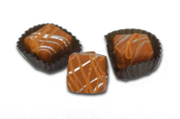 This is far and away one of our top items. A layer of our rich homemade caramel topped with a layer of our signature peanut butter meltaway truffle that has been sprinkled with bits of our homemade toffee, then the whole piece is hand-cut and enrobed in milk chocolate. Have a seat before you indulge, this one will knock your socks off.
